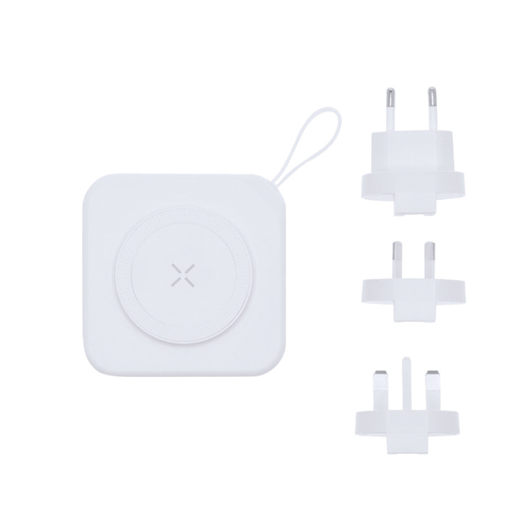 Powerbank tillverkad av återvunnen ABS. Med magnetisk fixering. Den har en USB-, Lightning- och Micro USB-utgång samt Type C- och Lightning-ingångar. Dessutom har den ett stativ för att ställa din telefon vertikalt.