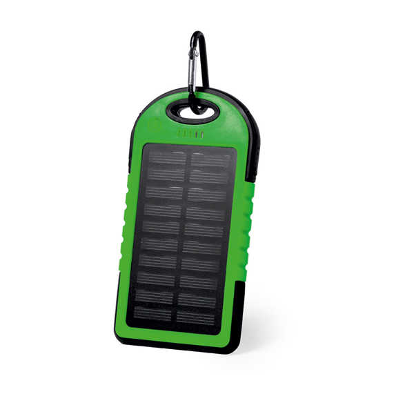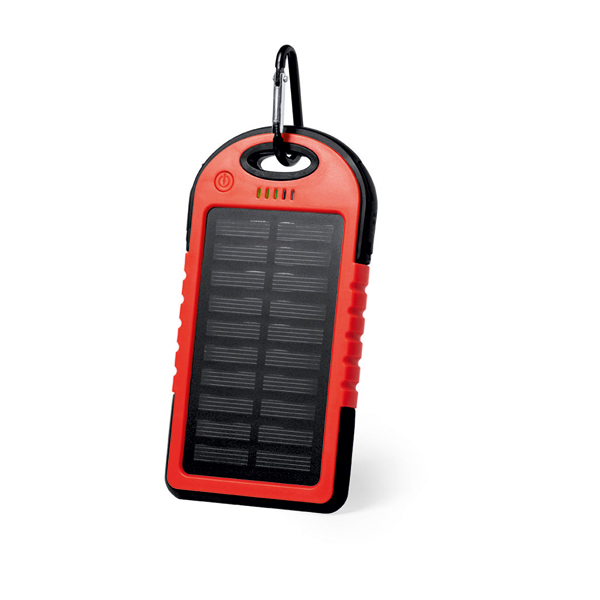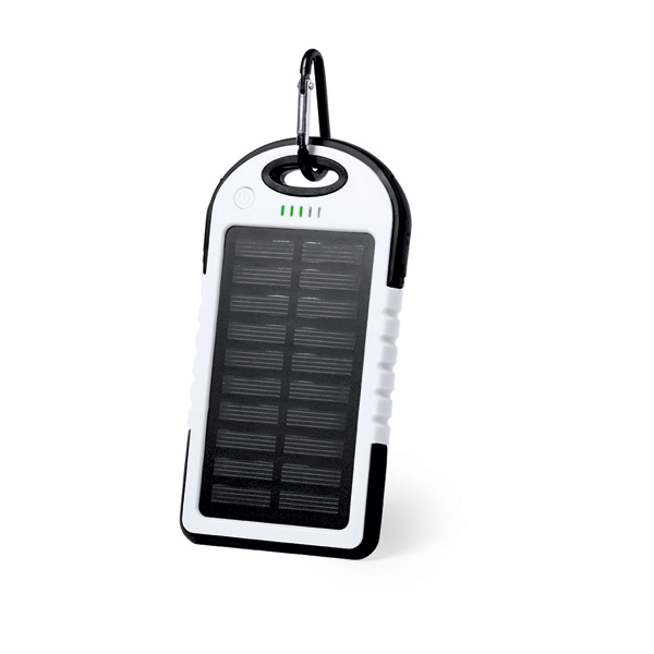 Powerbank med solcellsladdning och en kapacitet 4 000 mAh. Den är täckt med mjuk silikon och har med karbinhake i aluminium. Dubbel USB-utgång för laddning av två enheter samtidigt, med LED-indikatorer för laddningsstatus. LED-lampa med SOS-signalering för användning i nödfall. Inklusive en mikro-USB-laddningskabel.