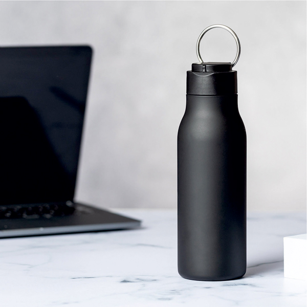 Termosflaska tillverkad i rostfritt stål. Matchande skruvlock utan BPA, med integrerad bärring.