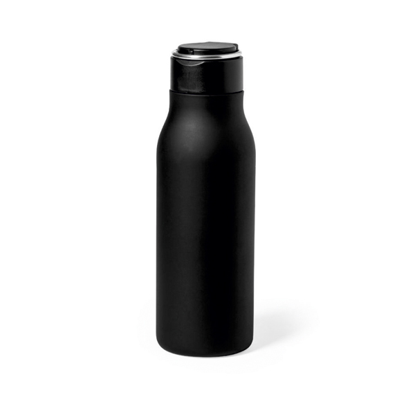 Termosflaska tillverkad av rostfritt stål. Har en gummibelagd yta. Inkluderar matchande silikonhandtag.