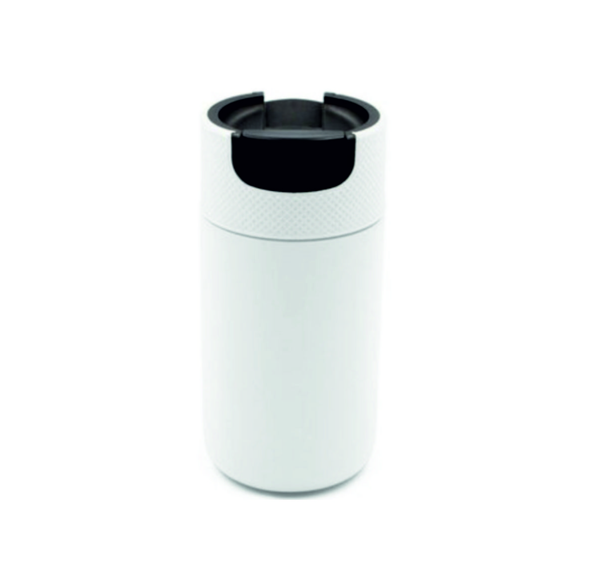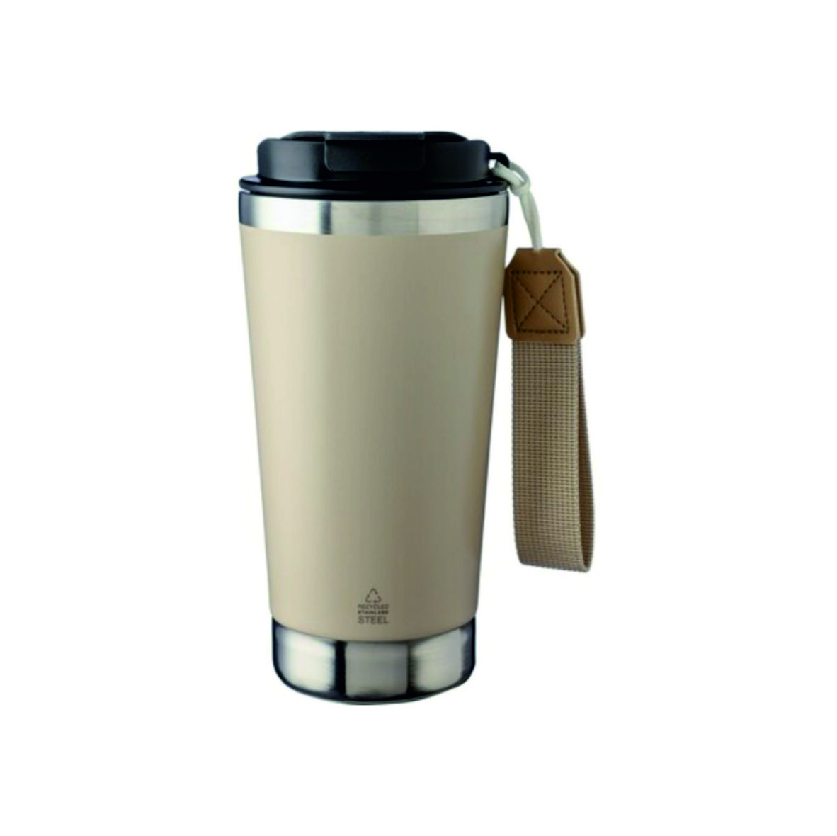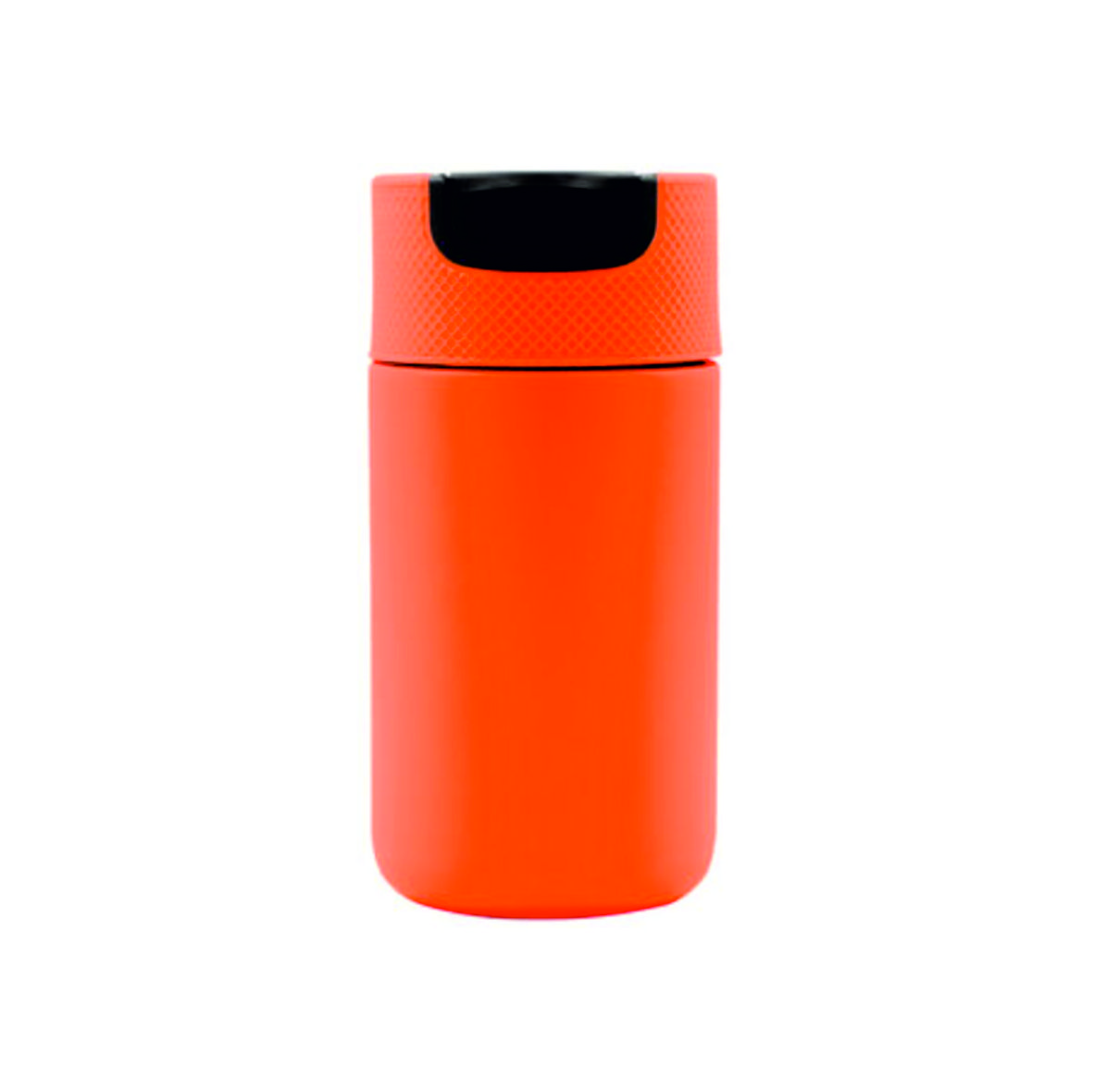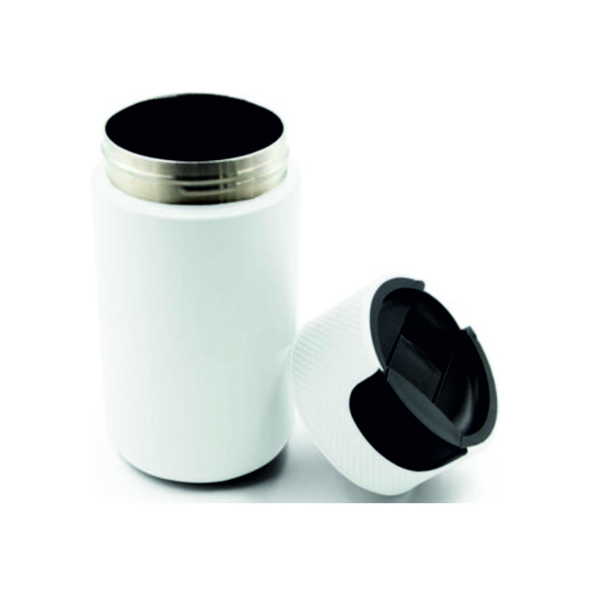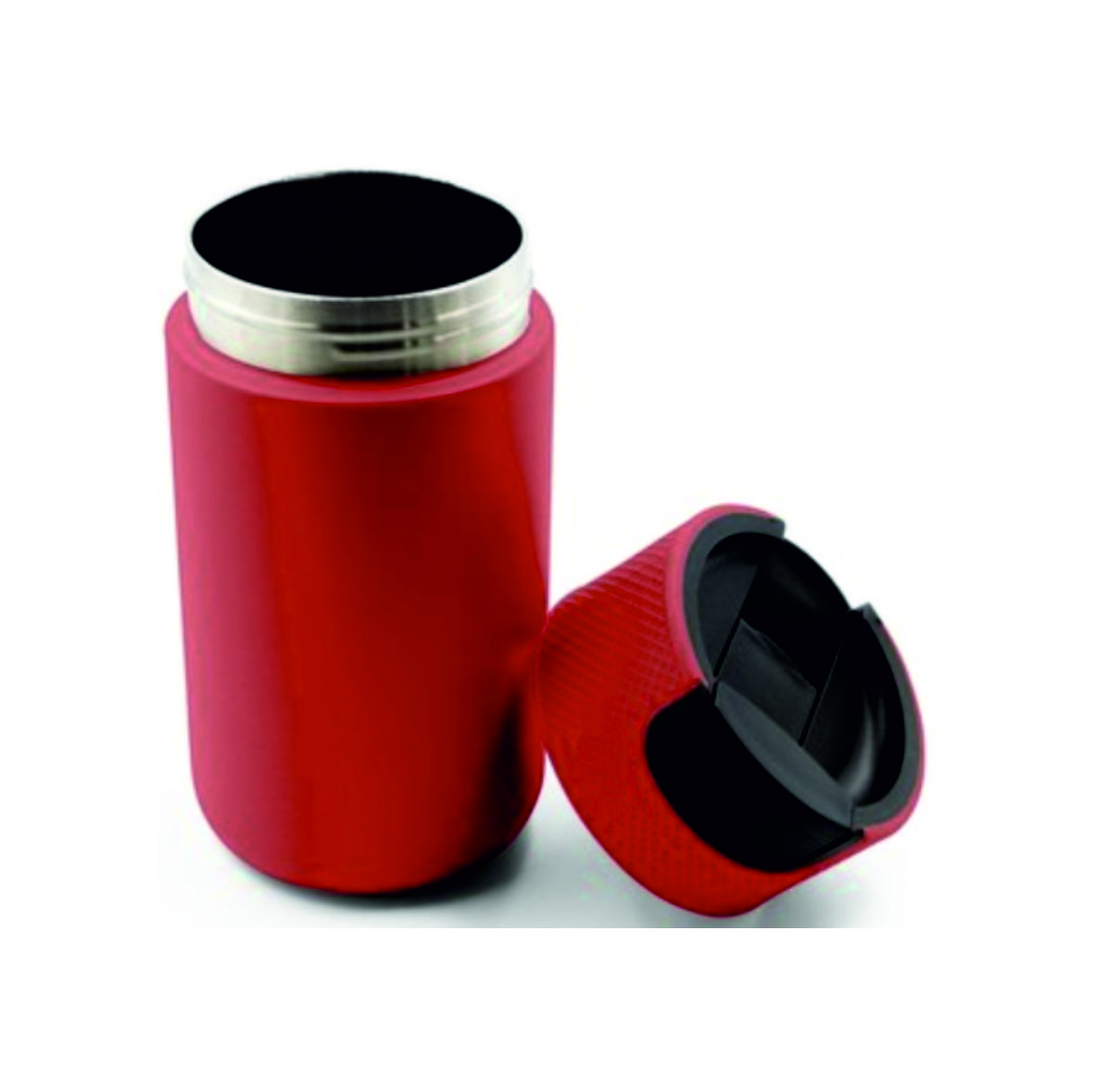 Termosmugg med dubbelvägg. Tillverkad av rostfritt stål. Plastlock med stängning. Håller drycker varma i upp till 10 timmar.
