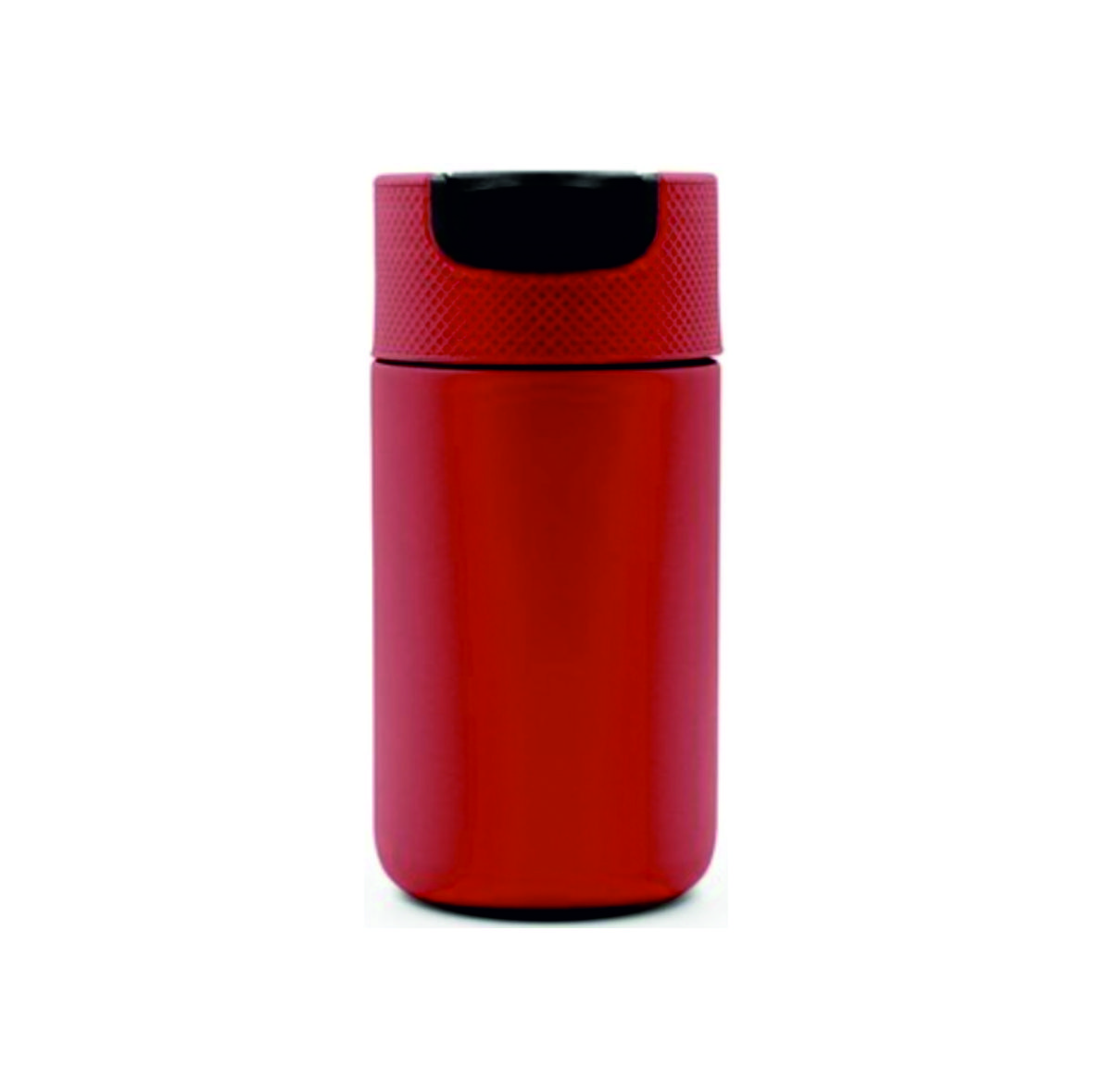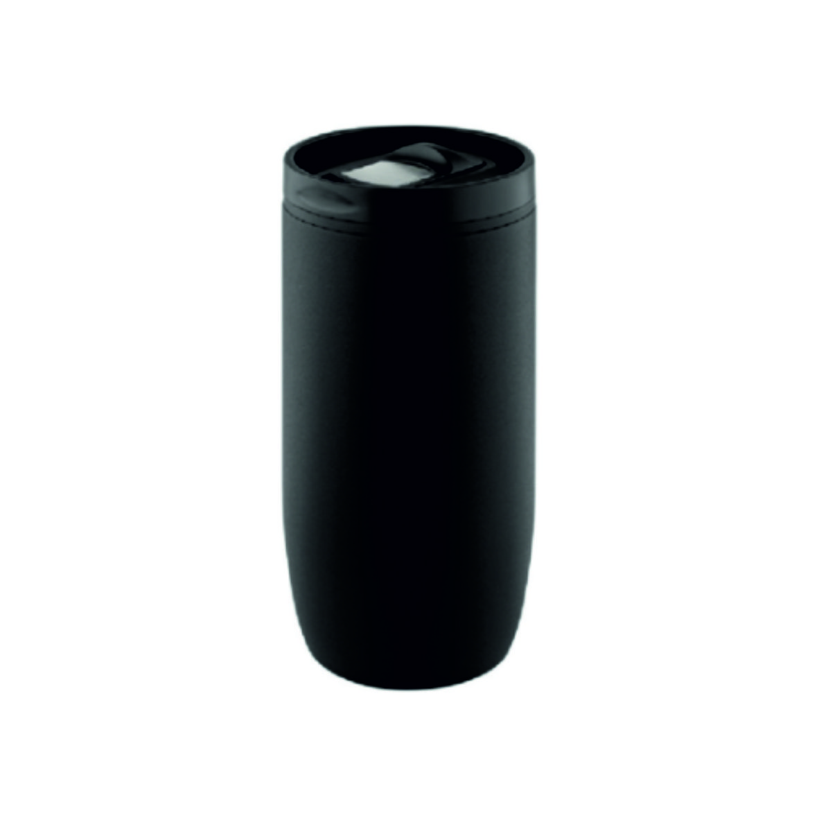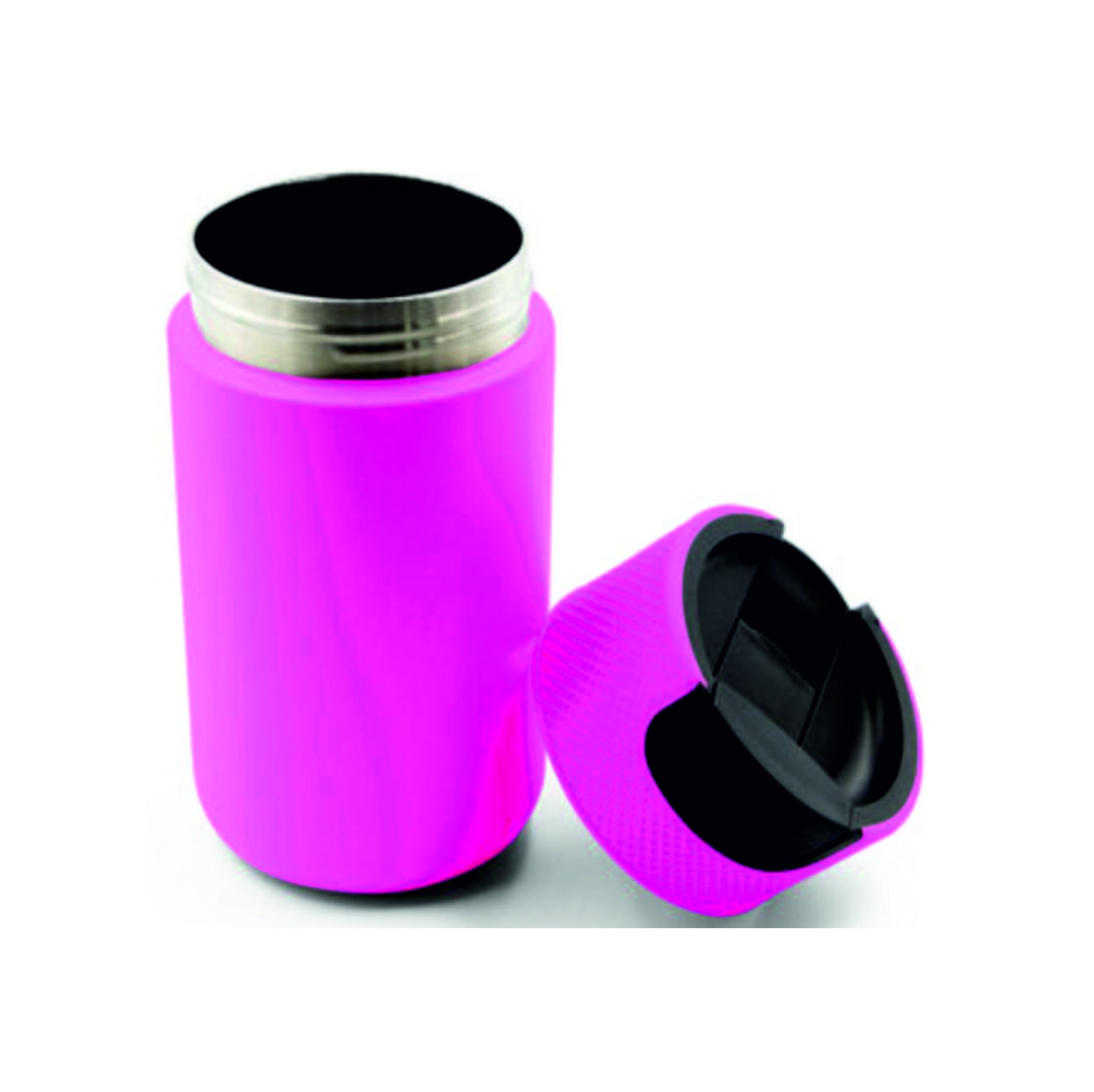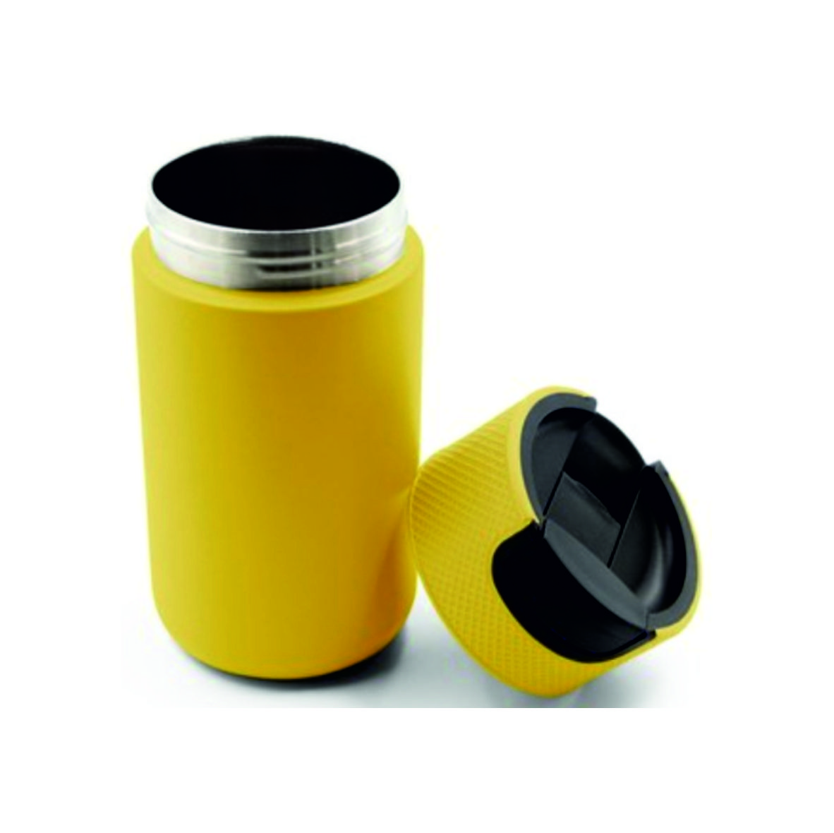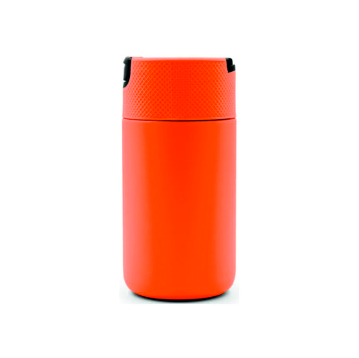 Termosmugg med dubbelvägg. Tillverkad av rostfritt stål. Plastlock med stängning. Håller drycker varma i upp till 10 timmar.