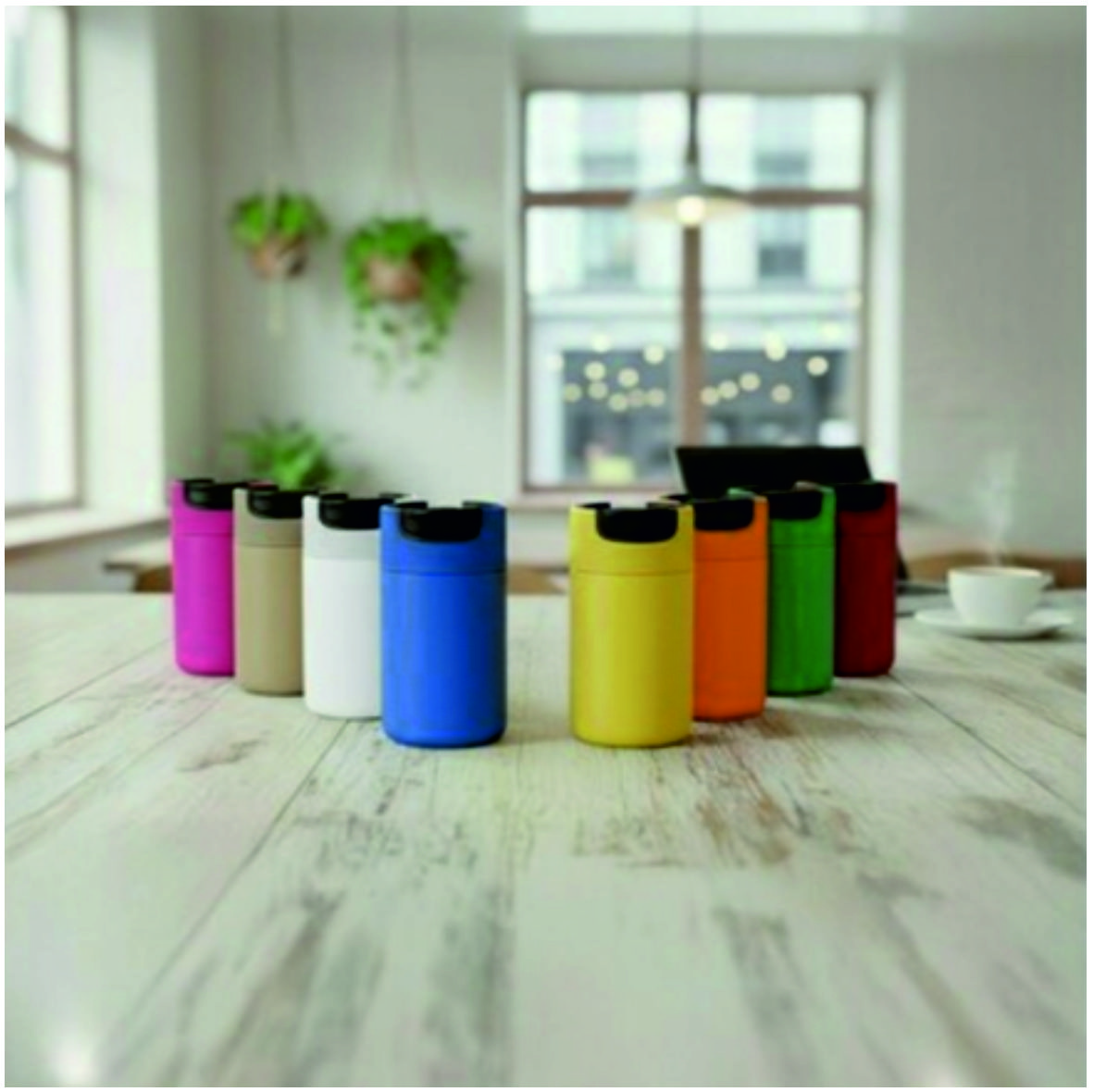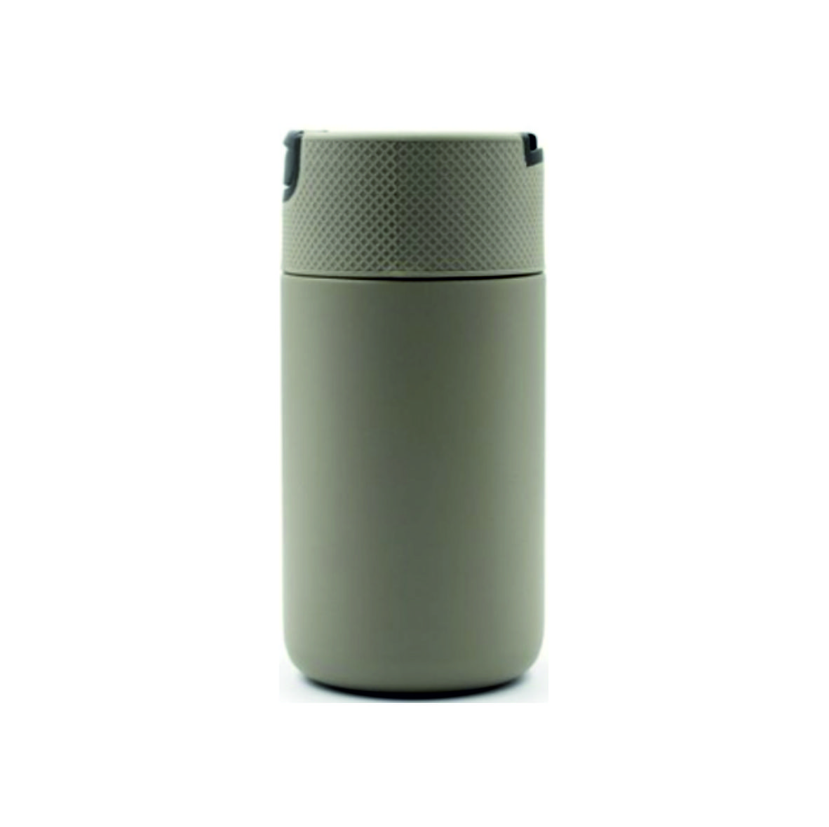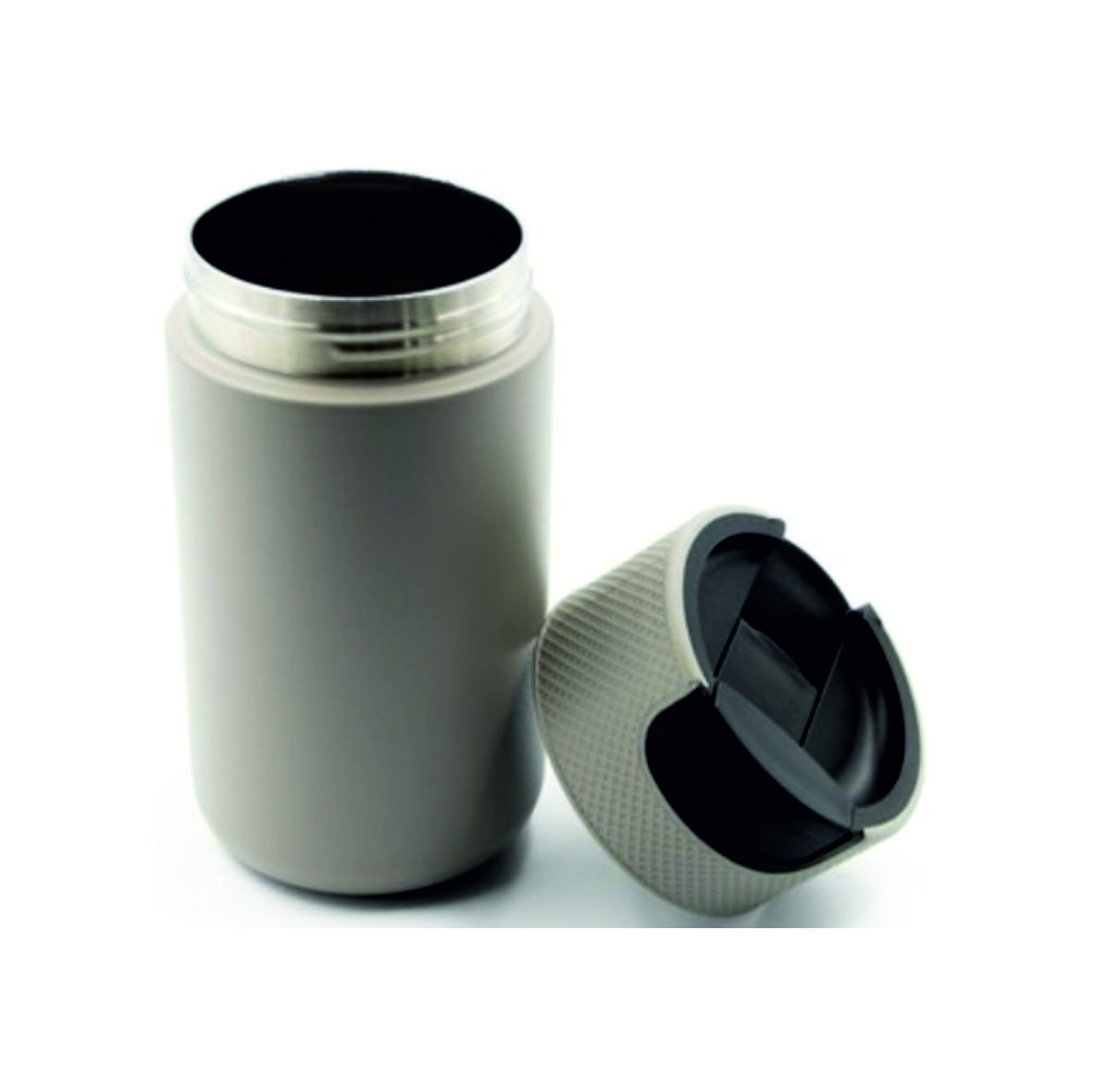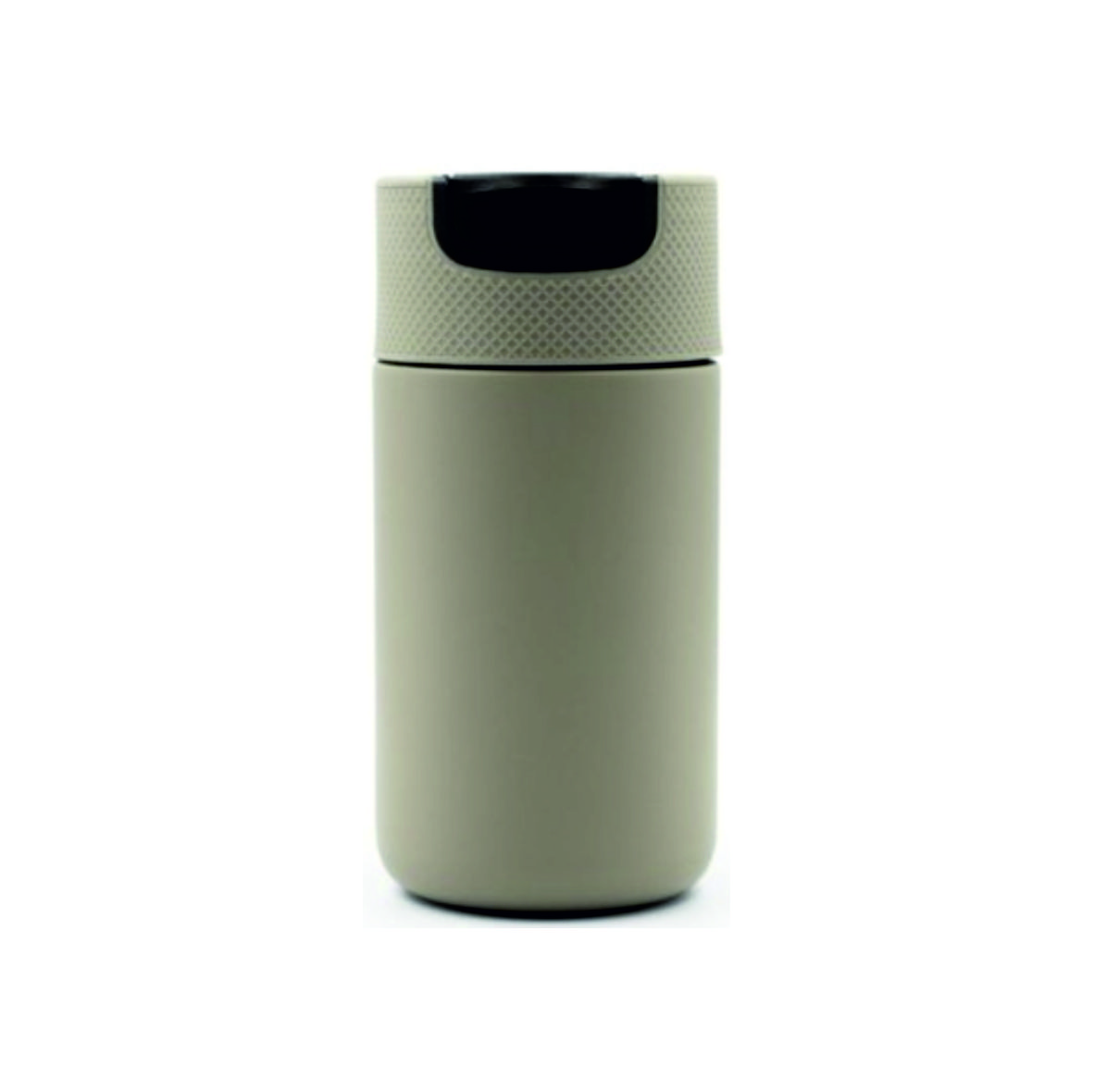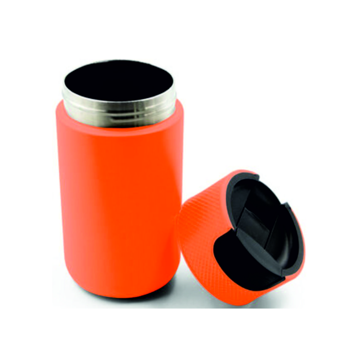 Termosmugg med dubbelvägg. Tillverkad av rostfritt stål. Plastlock med stängning. Håller drycker varma i upp till 10 timmar.