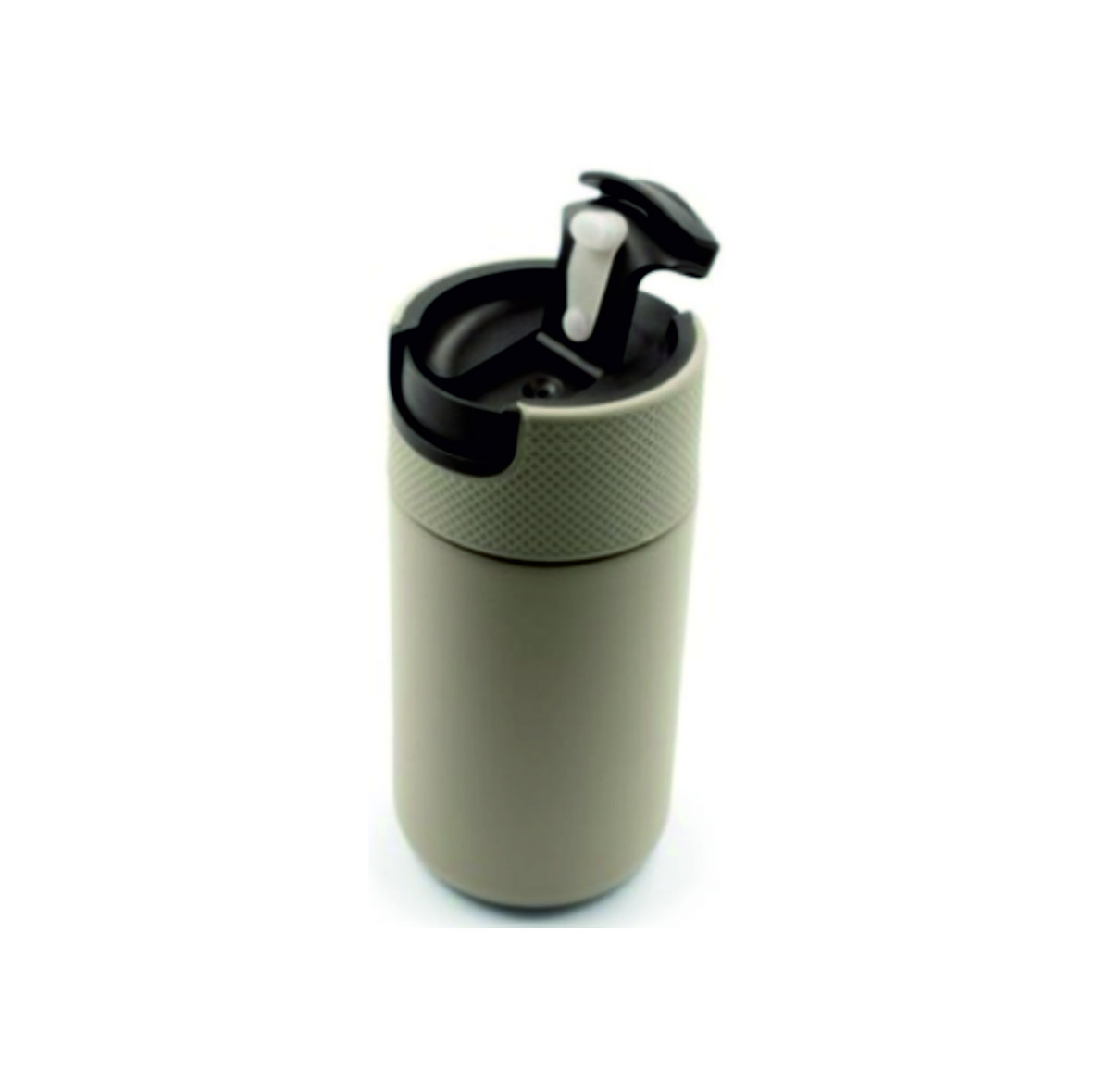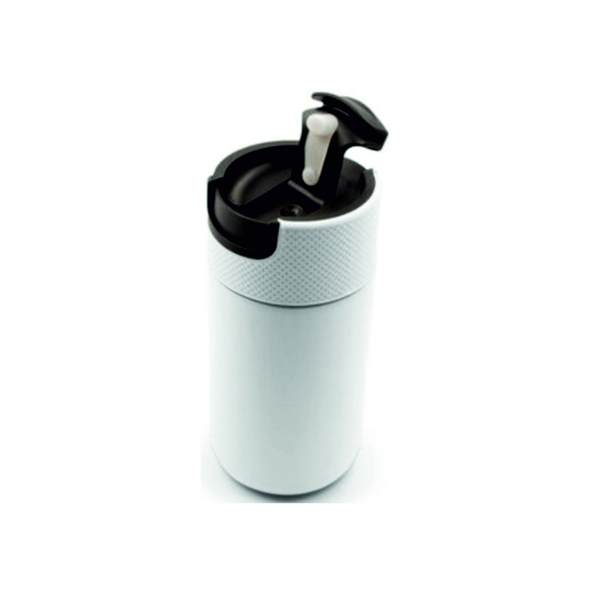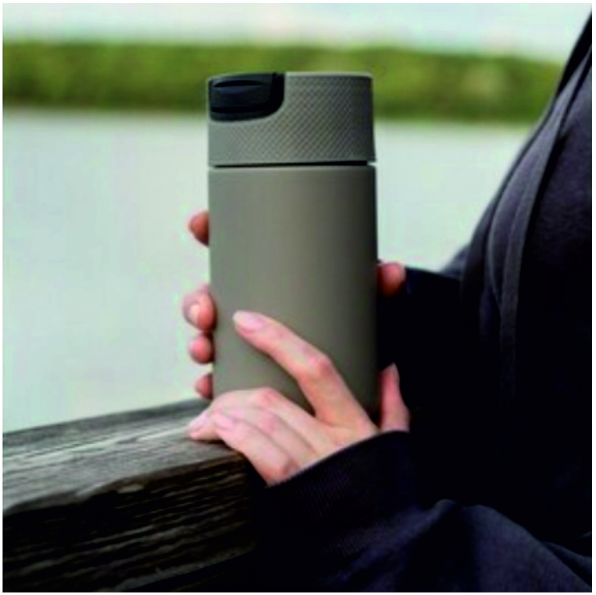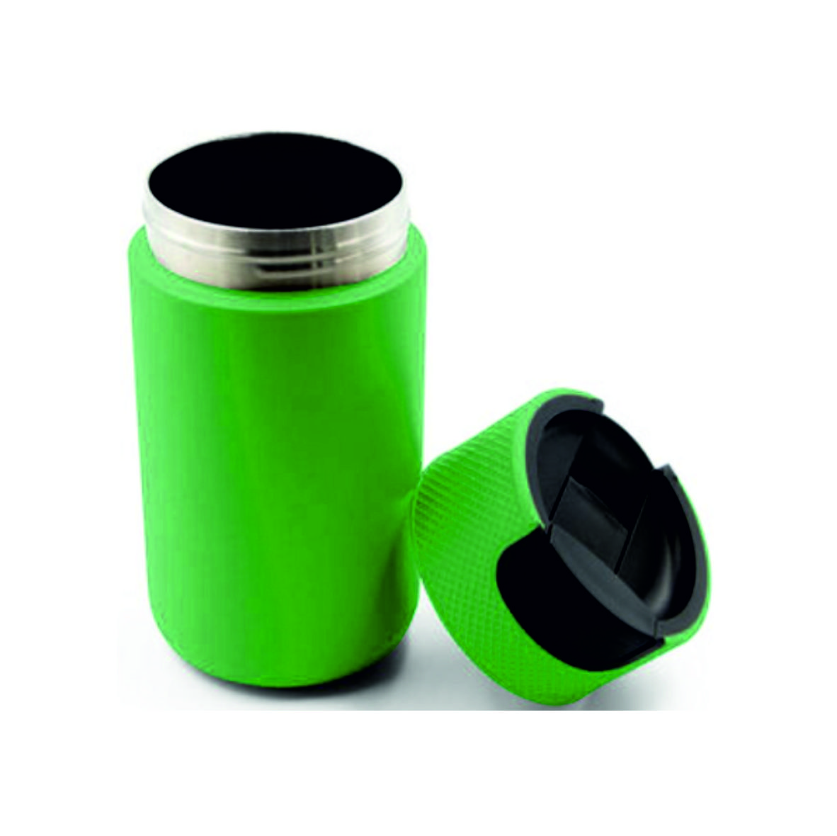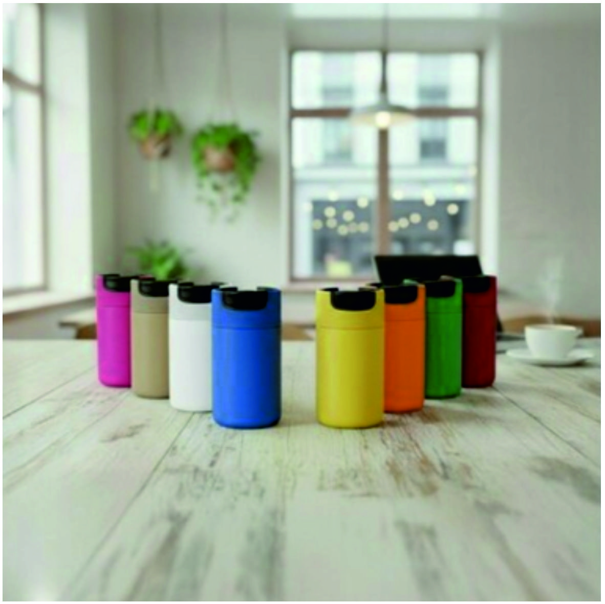 Termosmugg med dubbelvägg. Tillverkad av rostfritt stål. Plastlock med stängning. Håller drycker varma i upp till 10 timmar.