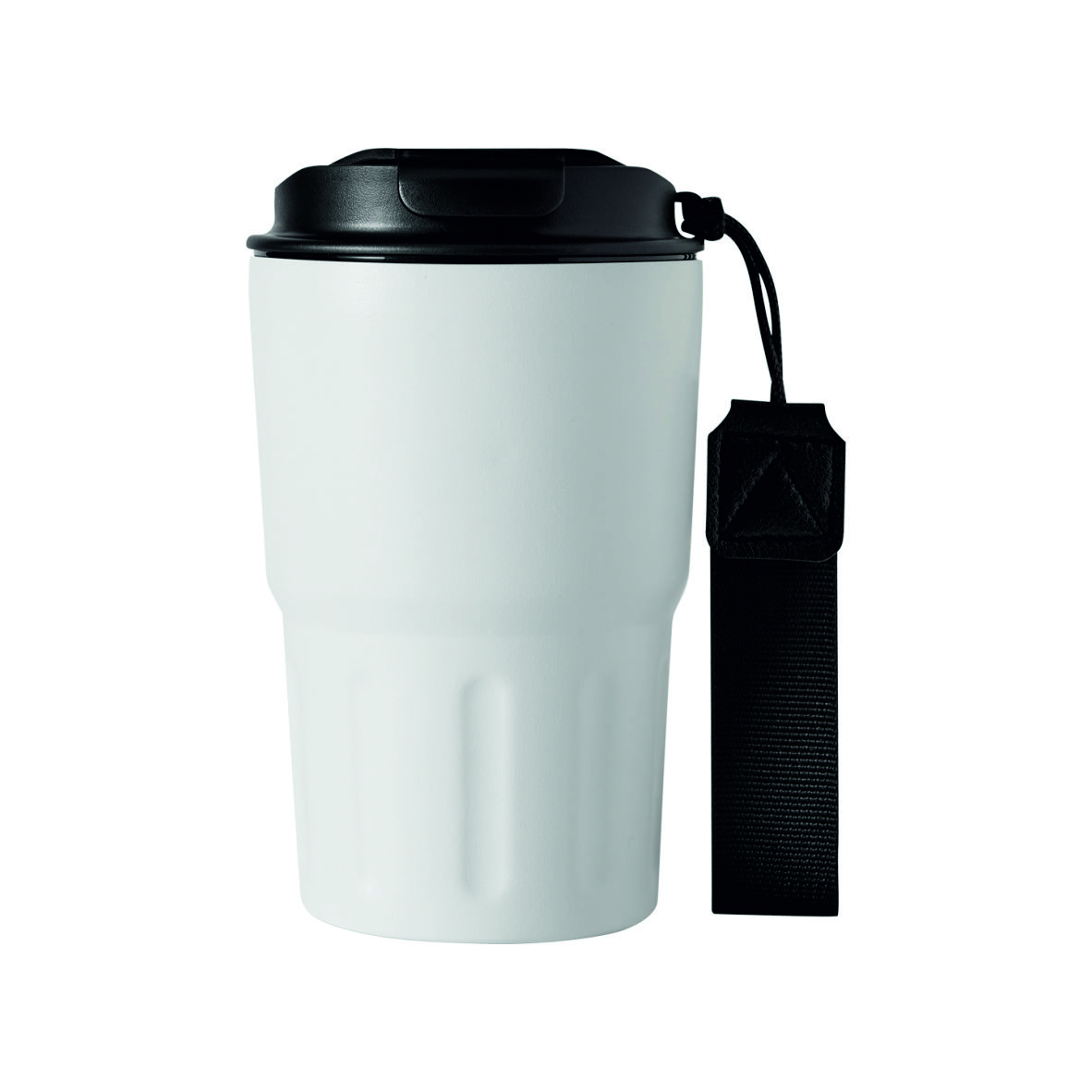Muggen är utrustad med ett säkert skruvlock i plast, silikonförsegling som minimerar läckage samt en integrerad dricköppning för smidig användning. Den medföljande handledsremmen i återvunnen plast gör den enkel att bära med sig – ett smart val både för dig och miljön.
